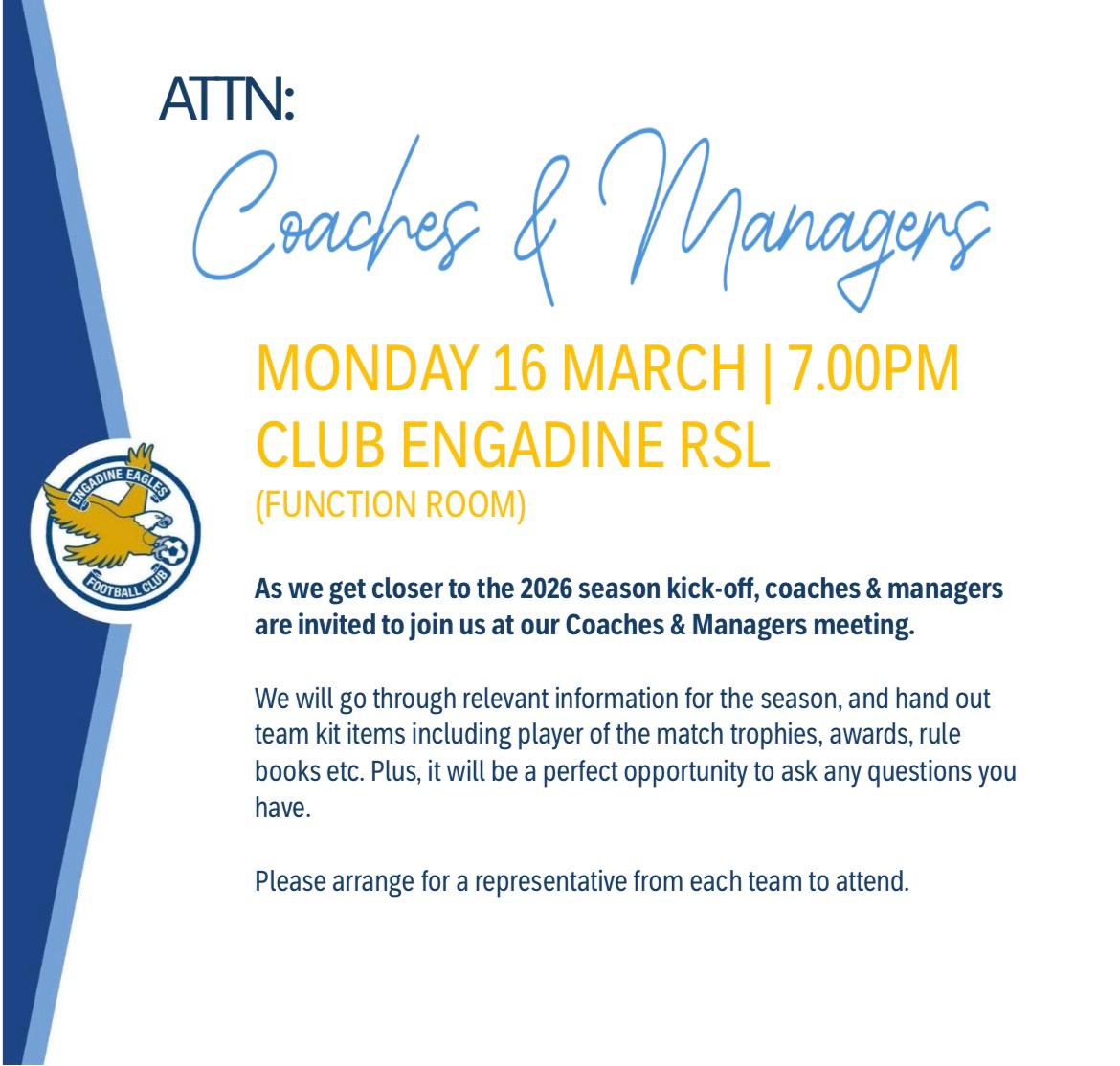 Please ensure a representative from each team is in attendance as this is your only opportunity to collect player ID cards.
