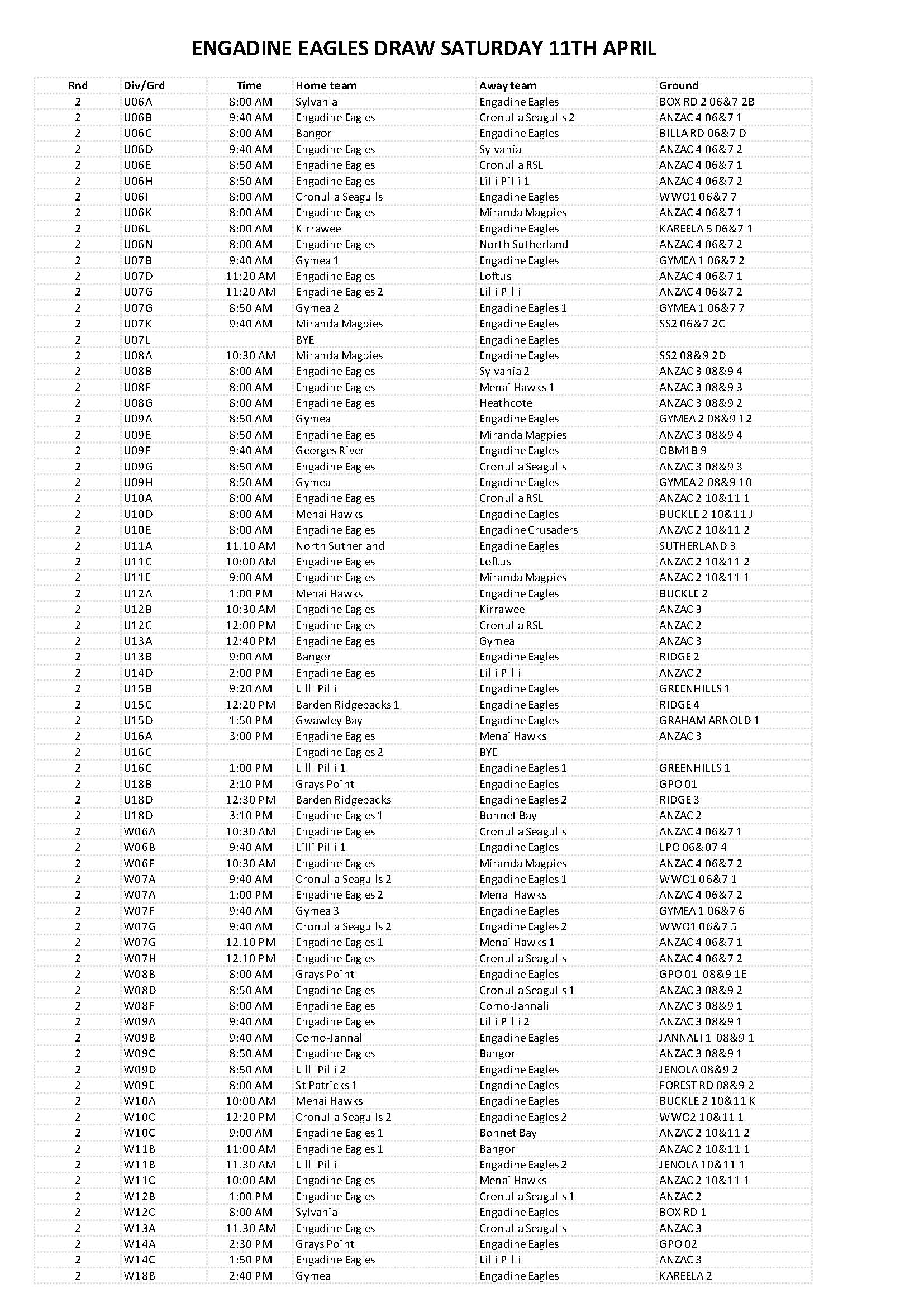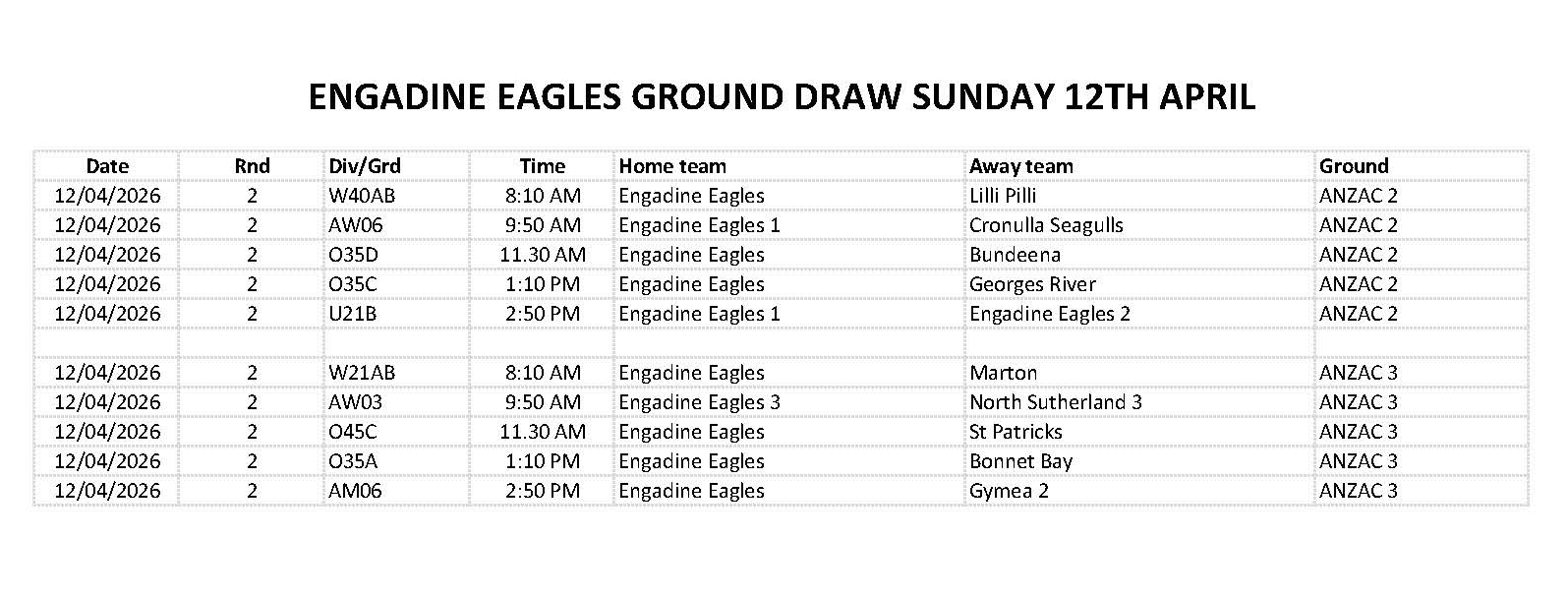 Find out who your team is playing in Round 2, commencing the weekend of 11 April.